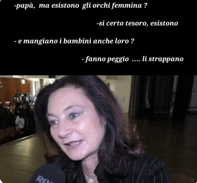 Uno di questi meme non può non fare riferimento a Pippi Calzelunghe, una bambina svedese protagonista di romanzi e serie TV he vive sola a Villa Villacolle. "Per fortuna noi di orchi pdioti non ne abbiamo incontrati", dice Pippi. Tantissimi meme fanno riferimento a Cecilia Angrisano, il magistrato che ha disposto il provvedimento dell'allontanamento dei 3 bambini. E proprio di uno di questi la vede protagonista come "orco femmina che strappa i bambini".