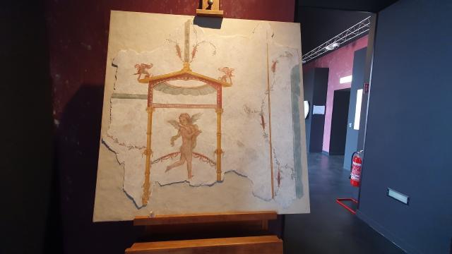 I frammenti erano pertinenti ad un ambiente scavato nel 2020 dal Parco Archeologico di Pompei, dove fu rinvenuto anche il graffito di Mummia, che ha fornito indicazioni sui possibili proprietari della villa. Tutto l’ambiente presenta una raffinata decorazione in III Stile con tre pannelli a fondo nero scanditi da candelabri databile tra il 35 e il 45 d.C.