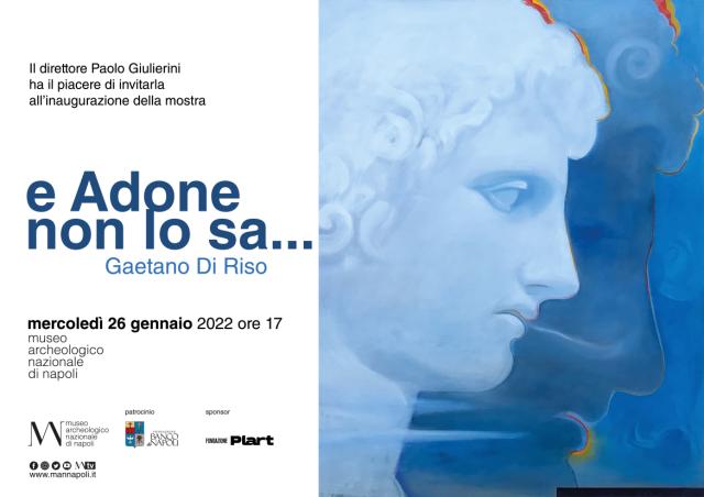"E Adone non lo sa...", la mostra di Gaetano Di Riso, in programma al Museo Archeologico Nazionale di Napoli dal 26 gennaio al 25 aprile, presenta dodici tele ispirate ad una celebre scultura che appartiene alle collezioni del MANN. Si tratta di Adone di Capua, opera che dalla prossima estate sarà inserita nel nuovo allestimento della sezione Campania Romana dell'Istituto: il marmo, che risale al II sec. d.C., decorava l'Anfiteatro Campano di Santa Maria Capua Vetere. Nell'iconografia antica, il bellissimo giovane, amato da Venere, rappresentava lo spirito della primavera e la natura che rifiorisce: partendo da questa suggestione, Di Riso applica il linguaggio dell'arte contemporanea alla rilettura del mito.