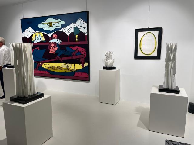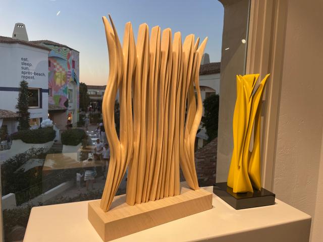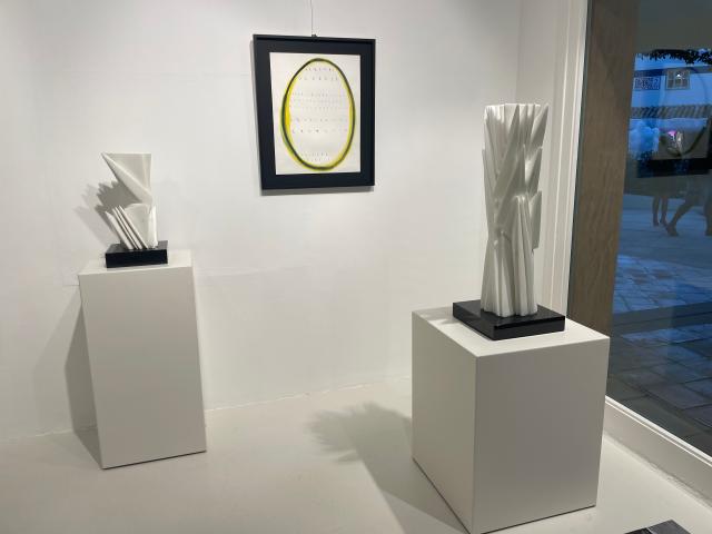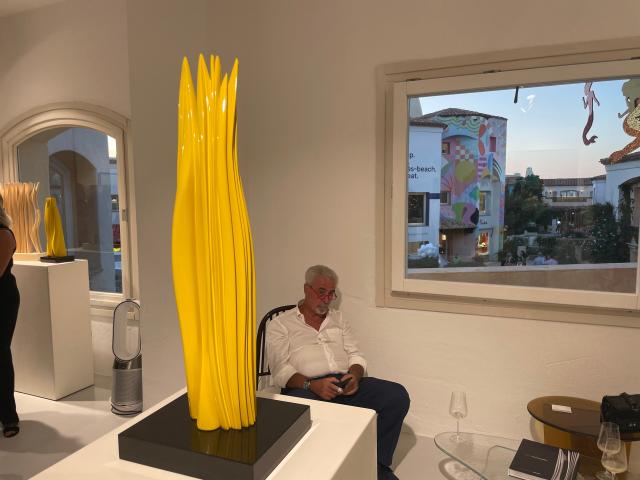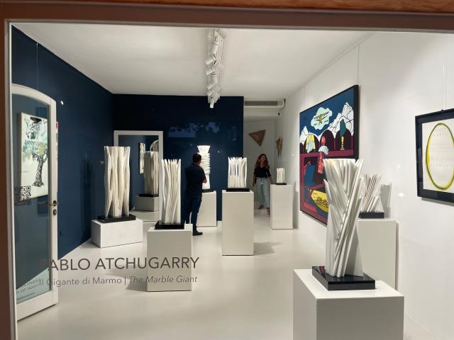 Questa personale alla Galleria Tonelli di Porto Cervo raccoglie un ventaglio di opere dell’artista la cui varietà di materiali richiama appunto “La vita della Materia”, emblematico titolo della mostra di Palazzo Reale con cui tra l’altro la galleria aveva collaborato. Se a piano terra della Galleria, il marmo bianco statuario delle sculture disposte a diverse altezze é un richiamo al candore delle vele, al piano superiore è allestito un teatrino di opere le cui superfici assumono diverse colorazioni illuminate dalla luce di Sardegna e accendono lo spazio della galleria. Oltre al marmo bianco di Carrara troviamo un’opera in rosa Portogallo, tanto amato dall’artista, ma anche i bronzi dipinti nei colori primari e il legno, a cui Atchugarry sta dedicando le più recenti sperimentazioni.