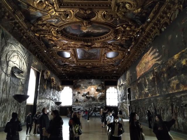 A tal proposito è impossibile non citare a Palazzo Ducale l’intervento di Anselm Kiefer, con ogni probabilità ciò che più rimarrà nella storia di questa biennale. L’artista, ispirandosi ad una frase del filosofo veneto Andrea Emo che dà anche il titolo all’intervento (“Questi scritti quando saranno bruciati daranno finalmente un po' di luce”), propone una apocalittica e smisurata installazione di 800 mq che occupa tutti e quattro il lati della sala dello scrutinio e che unisce il passato al futuro della città di Venezia. Le opere, provvisoriamente e simbolicamente sovrapposte a tele del Tintoretto e del Palma, parlano con enorme potenza di fuochi devastanti, decadenza, memoria e creazione.