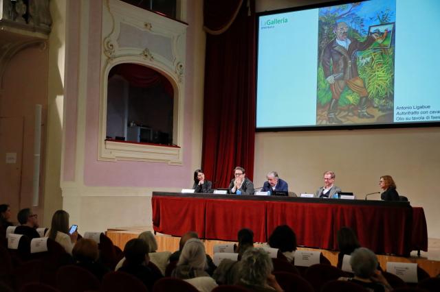 Ai saluti istituzionali di Sabrina Bianchi, responsabile Brand e Marketing Communication e del Patrimonio culturale di BPER Banca (riportati da Greta Rossi in qualità di coordinatrice de La Galleria BPER Banca), e di Davide Zanichelli, direttore della Fondazione Palazzo Magnani, hanno fatto seguito gli interventi di Sandro Parmiggiani e Giorgio Bedoni, che hanno fornito una lettura storico-artistica dell’opera, inserendola nell’economia dei progetti espositivi da loro curati e nel quadro valoriale di due realtà museali particolarmente attente a tematiche relative a diversità, inclusione e accettazione del sé. La tavola rotonda si è conclusa con la relazione di Chiara Bombardieri, responsabile dell’Archivio ex Ospedale psichiatrico San Lazzaro di Reggio Emilia, che ha ricostruito la storia personale di Ligabue e la sua tormentata vicenda psichiatrica, facendo riferimento alle testimonianze documentari e ai testi di approfondimento presenti nel catalogo della mostra modenese.