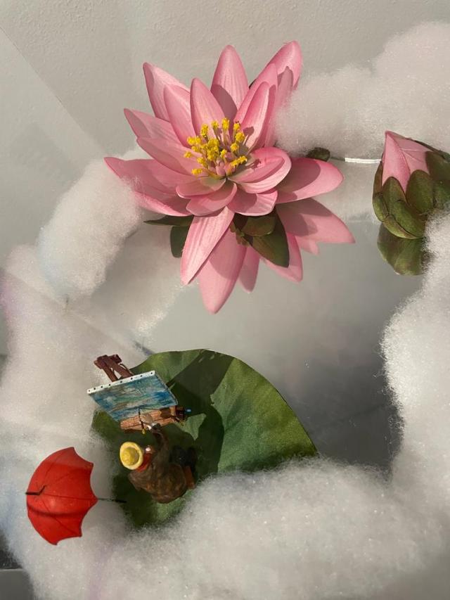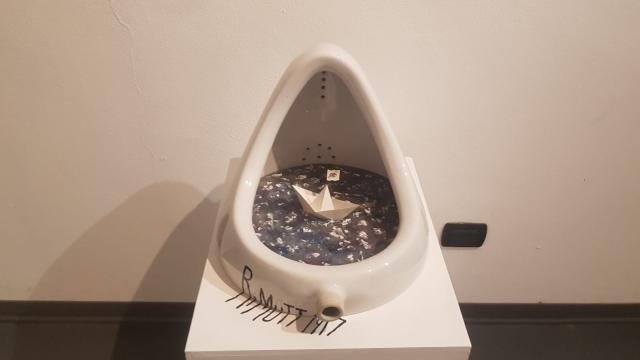 Sono, poi, molte le opere che sfidano le regole della storia dell’arte con omaggi irriverenti e paradossali, come avviene nel caso di Marcel Duchamp e la barchetta dell’arte che naviga nell’orinatoio (piuttosto esplicativo il titolo Navigar nel periglioso mar delle avanguardie) all’Arcimboldo marino dove compare un’immagine multiforme realizzata con un assemblaggio di creature marine in plastica, passando attraverso Il sogno di Claude con un Monet in miniatura che dipinge sopra una foglia di Ninfea galleggiante riflessa su uno specchio d'acqua.