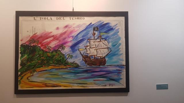 L’universo immaginifico di Bonomi comprende anche riferimenti a Richard Wagner con Vascello fantasma, un’imbarcazione in fibra sintetica e cotone che veleggia poeticamente verso l’alto, e a Fëdor Dostoevskij con tre opere dedicate al suo celebre racconto Il coccodrillo: un caso straordinario dove, attraverso un gioco di specchi, l’osservatore prova la sensazione di essere inghiottito dal coccodrillo. La letteratura è fonte d’ispirazione anche per alcune preziose testimonianze dei primi anni Novanta che appartengono al ciclo Isola del Tesoro con l’artista che evoca Jules Verne, Joseph Conrad e Daniel Defoe. Bonomi dipinge velieri e imbarcazioni antichi su carte nautiche proponendo le sue classiche tautologie che permettono di creare un rapporto di sincretismo tra l’oggetto pittorico e il materiale.