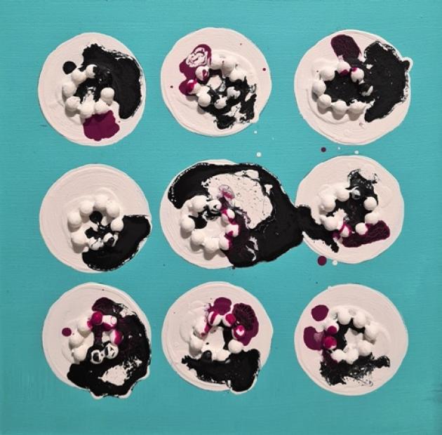 Il corpus di opere, composto per esattezza da 30 lavori ad acrilico su tela (che vedono, misto al colore, l’impiego ora di elementi seriali, ora della foglia oro) e 6 sculture a dimensione naturale, racconta le emozioni dell’artista sotto forma di ricordi che si intrecciano con quelle della storia e cultura marsigliese, intercettando idealmente delle trame emozionali come vere e proprie radici, diramazioni.