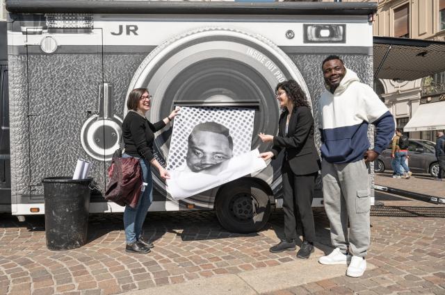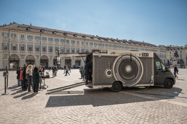 Ha preso il via ieri l’azione di arte pubblica “INSIDE OUT”, progetto che ha reso famoso a livello internazionale il nome di JR e che ha festeggiato dieci anni proprio in questi mesi, toccando oltre 140 città nel mondo con tappa per la prima volta a Torino. Fino alle ore 18 un van personalizzato da JR, attrezzato all’interno con un set fotografico, ha permesso di scattare in Piazza San Carlo i ritratti di 200 cittadini torinesi solo nella giornata di ieri, immediatamente stampati su carta da manifesto e incollati sul pavimento della piazza nella parte antistante le Gallerie d’Italia - Torino, nel tratto del sottoportico e nel cortile del museo di Intesa Sanpaolo. Tra i partecipanti anche alcune associazioni di migranti coinvolti dalla Compagnia di San Paolo.