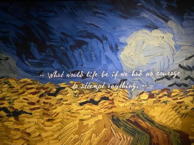 Van Gogh in un succedersi di pennellate, disegni e dipinti, i cui soggetti vengono resi dinamici e restituiti ad una dimensione ‘reale’ grazie al video-mapping.