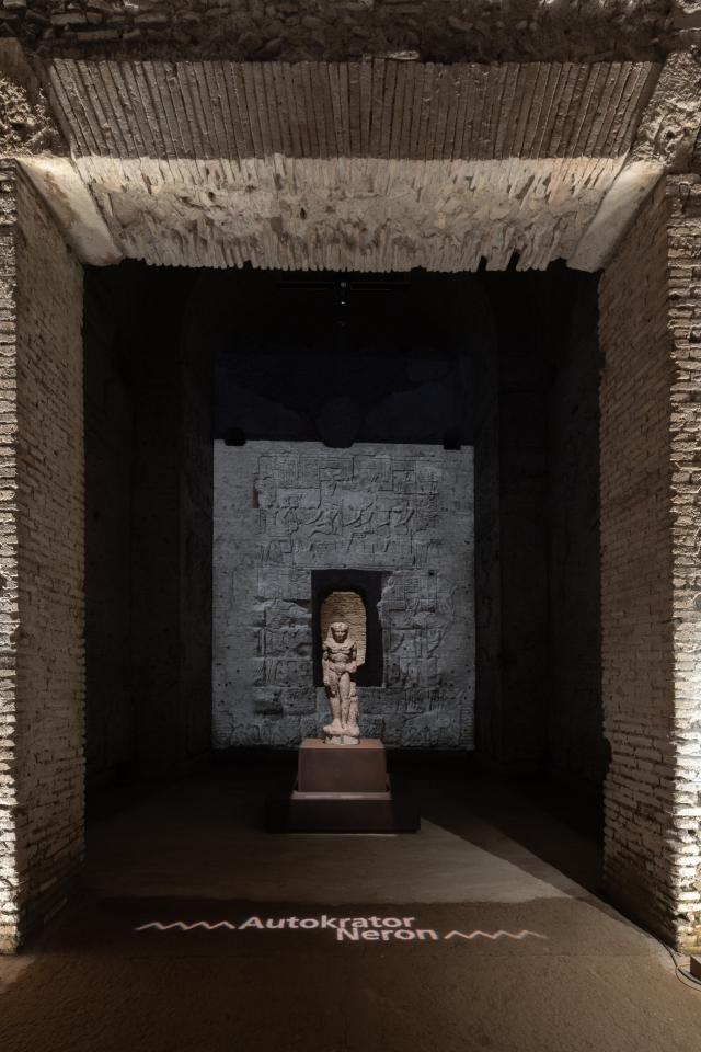 Il percorso espositivo si snoda attraverso le ricche sale della reggia imperiale seguendo una suggestione che permette di approfondire la presenza di Nerone in Egitto e la diffusione del culto isiaco a Roma e di scoprire gli spazi monumentali della Domus Aurea attraverso un’apertura straordinaria del monumento che permette una fruizione tutti i giorni della settimana.