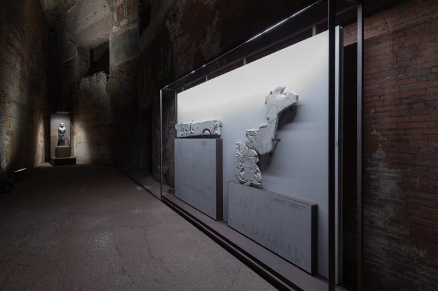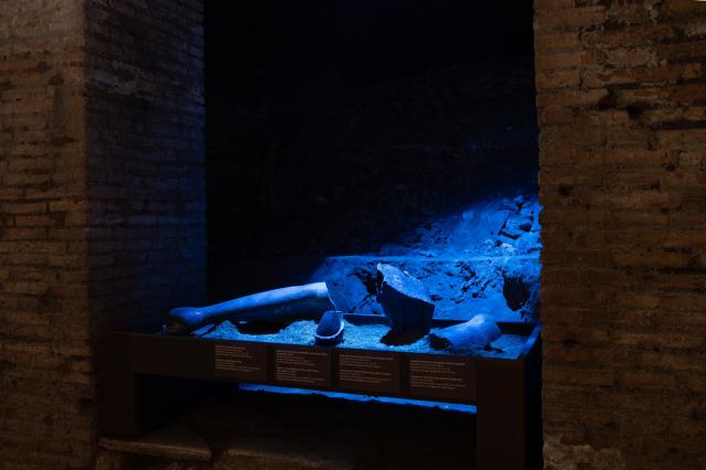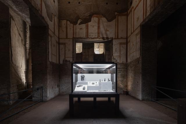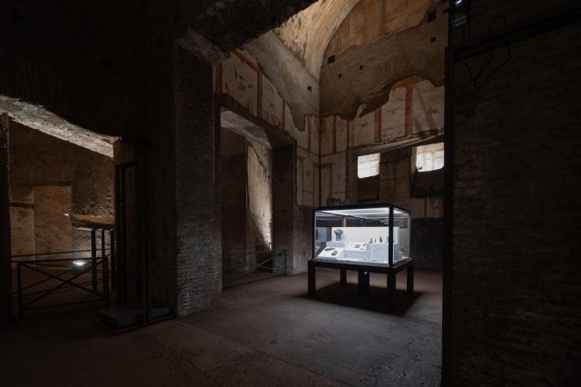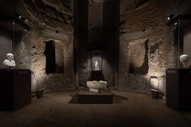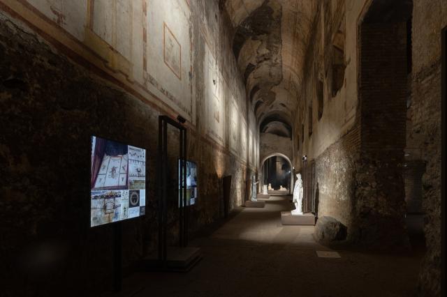 Cuore dell’esposizione è il Grande Criptoportico, un corridoio di servizio, lungo circa 60 m, che collegava i due cortili esterni pentagonali e permetteva di raggiungere velocemente gli ambienti di rappresentanza più importanti del palazzo neroniano: la Sala della Volta Dorata e la Sala Ottagonale.