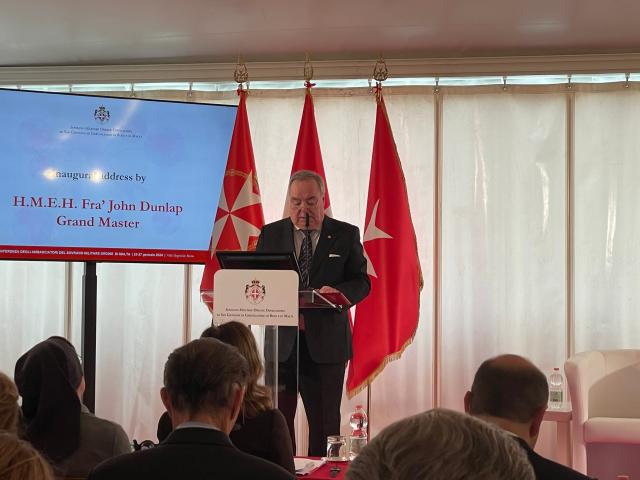 Dopo la celebrazione della Santa Messa nella Chiesa di Santa Maria in Aventino, celebrata dal Cardinale Patrono Gianfranco Ghirlanda, la Conferenza è stata aperta da un messaggio inaugurale del Gran Maestro, Fra' John Dunlap.