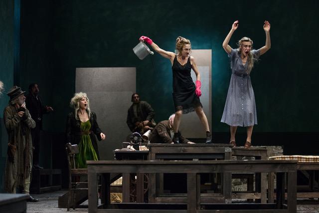 La scenografia mobile di Marco Rossi si muove un grande stanzone con brandine e tavolacci, i costumi di Gianluca Sbicca e le luci di Luigi Biondi.