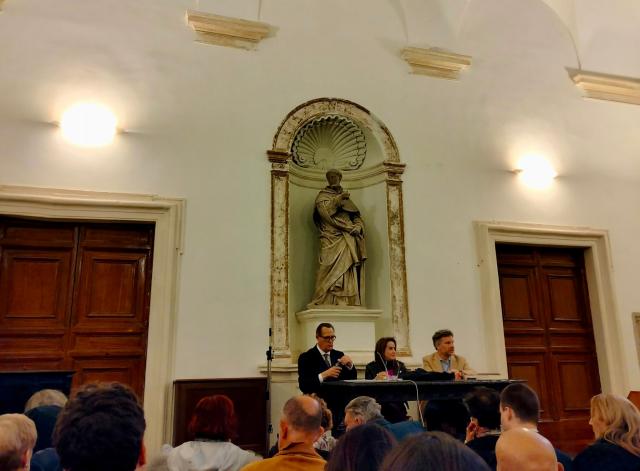 La Sala dei Papi del Convento domenicano di piazza della Minerva a Roma, accanto al Pantheon, è stata per l'occasione affollata di artisti, scrittori, musicisti, poeti ed esponenti della nobiltà europea. Qui si trovò il padre dell'astronomia moderna, Galileo Galilei, sospettato di eresia, e le spoglie di Caterina da Siena, Dottore della Chiesa, del pittore mistico Beato Angelico, Patrono universale degli artisti, e di Papa Benedetto XIII sono nella basilica, tra gli affreschi di Melozzo da Forlì e Filippino Lippi.