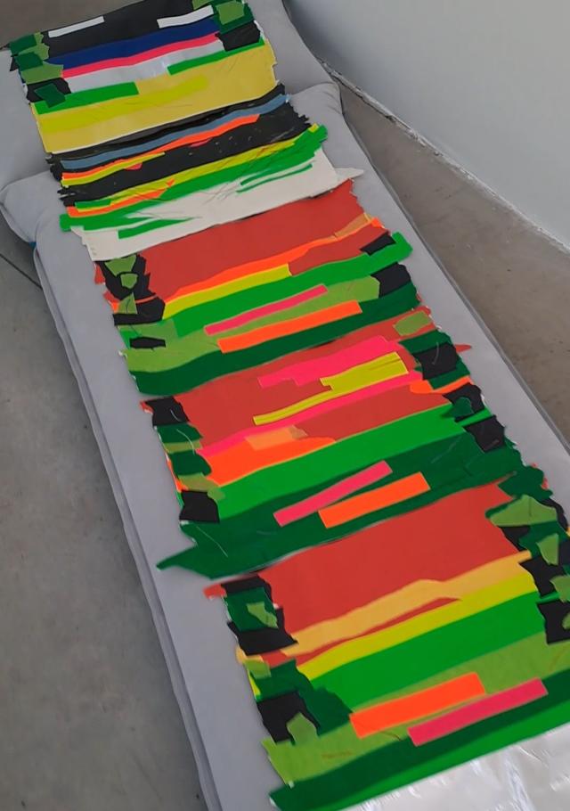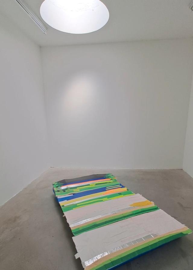 C'è uno spazio a Milano che sembra New York: è via Ventura 6, una strada a un paio di chilometri da corso Buenos Aires che ospita un gruppo di gallerie d'arte contemporanea. Durante le inaugurazioni la piccola strada si anima del popolo eccentrico degli amanti dell'arte. Qui, alla galleria Monopoli, espone Jacopo Stoppa, artista, docente universitario di storia dell'arte, curatore di mostre. In uno spazio bianco e pieno di luce sono appoggiati in terra una decina di materassini gonfiabili, quelli che si usano al mare. Le opere di Stoppa sono appoggiate su questi attrezzi da spiaggia: è evidente il rimando alle strisce colorate delle sdraio negli stabilimenti balneari. Stoppa infatti compone i suoi "paesaggi" con nastri colorati per mascheratura: in carta, tessuto, pvc. Materiali industriali, insieme al metallo e alle matite grasse, che trasformano gli adesivi fosforescenti in orizzonti digradanti, con diverse sfumature di colore. Le immagini sono accumulate, una sopra l'altra, sui materassini, come a creare delle isole, delle zattere di salvezza, che portino il visitatore a una percezione pittorica ottenuta tramite materiali di uso comune ma reimpiegati fuori contesto e quindi con effetto spiazzante. Tra arte concettuale e minimalismo, le linee colorate di Jacopo Stoppa ricordano le strisce di Sol Lewitt e un'opera del 1967 di Alighiero Boetti, quando prese il tessuto di cotone a righe colorate, lo stesso che si utilizza per le sdraio, e lo racchiuse a zig-zag dentro a una struttura metallica: il tema della ripetizione come modalità di produzione estetica, che fu caratteristico di Boetti, lo si ritrova anche qui, in questa mostra suggestiva di Jacopo Stoppa. Scrive Giovanni Agosti, nella presentazione che accompagna questo esordio: "Questi paesaggi senza figura sono quasi cerotti per le bruciature dell'esistenza, disposti su materassi gonfiabili pronti a veleggiare verso le isole Fortunate". La mostra Iles flottantes è visible fino al 6 luglio dal martedi al sabato 14-19.