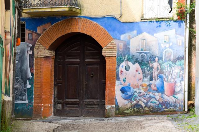 Per far rivivere quel paesino e tornare a vivere Dora e Giovanni iniziano a inondarlo di colori: invitano amici, street artists, autori, bambini. Ogni opera viene concordata e collocata in un luogo preciso. La “casa-pensatoio” è la casa dove la coppia si dedica al progetto ed è aperta al pubblico e visitabile.