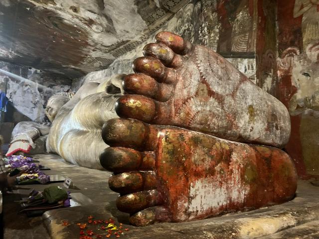 Giovedi 2 gennaio mi reco a Dambulla, patrimonio Unesco dal 1991, un complesso di templi con un’ottantina di grotte, di cui solo cinque visitabili, ognuna diversa dall’altra. Per accedere al sito, scale, scale e ancora scale.