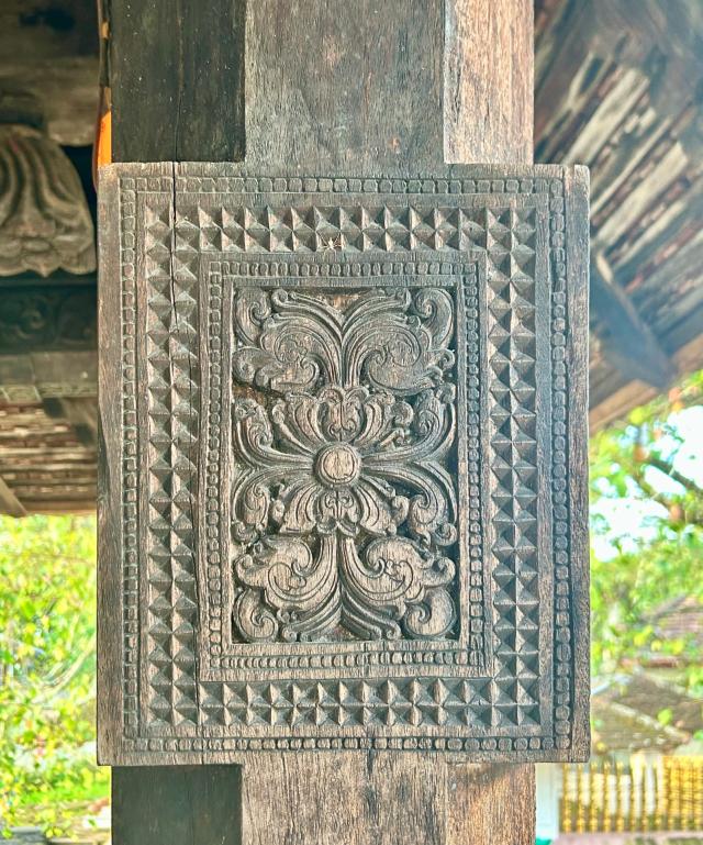 Famoso soprattutto per le stupende colonne in legno intarsiato che raffigurano ballerini, animali, motivi geometrici.