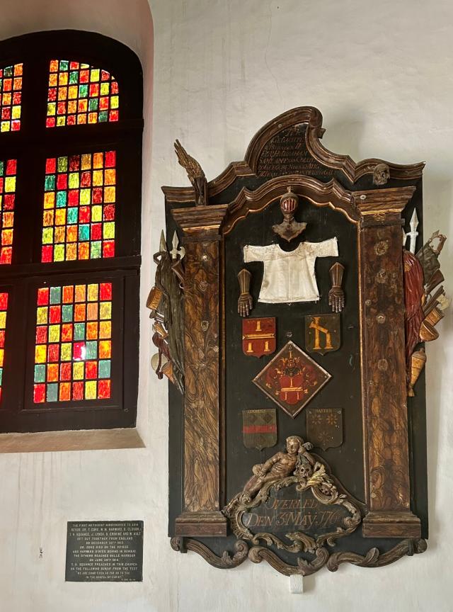 Visita alla Chiesa riformata olandese del 1755, con sgargianti vetrate policrome.