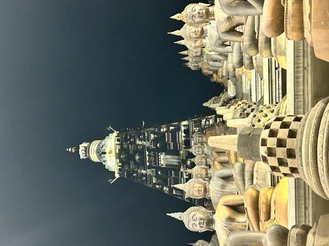 Visito il Golden Temple. All’esterno, alla destra dell’ingresso principale, in posizione elevata e un po’ nascosta, una lunga fila di statue, monaci buddisti vestiti con il classico thero arancione, formano una surreale processione artistica nel folto della boscaglia.