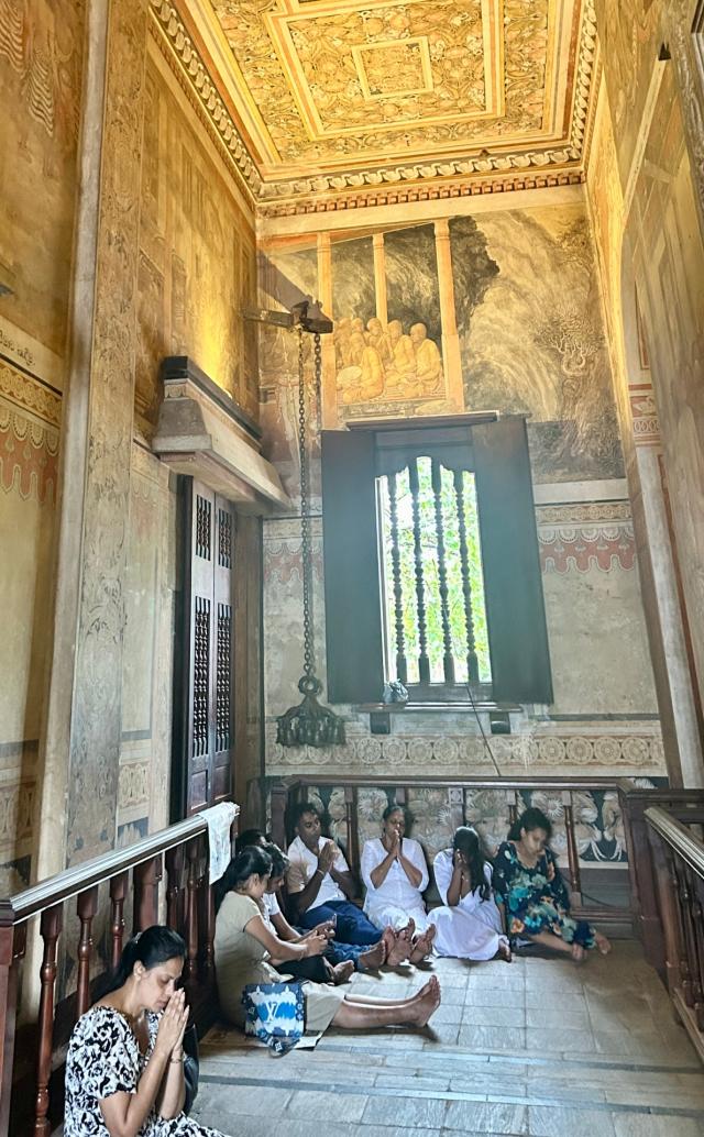 Venerdì 3 gennaio, a Kandy, visito lo Sri Dalada Maligawa, nei pressi del lago artificiale: architettura cingalese del XVII secolo, intarsi in legno, decorazioni dorate.