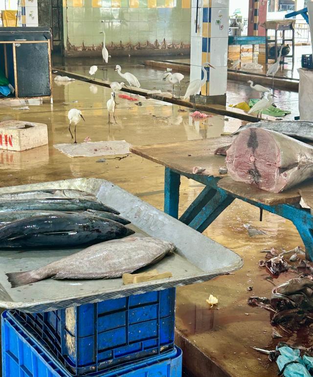 Un salto al mercato del pesce, aperto 24 ore al giorno, anche la domenica. Sono circa le quattro del pomeriggio. A quest’ora hanno venduto tutta la merce. Un’efficiente squadra di aironi cenerini ripulisce il pavimento dagli avanzi.