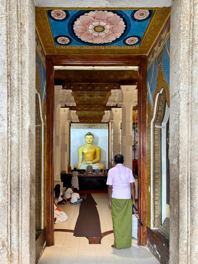 Mi reco al tempio di Kelaniya Raja Maha Vihara, a circa 45 minuti di auto dal centro. Non vedo la rastrelliera per depositare le scarpe, quindi non me le levo. Dopo una decina di minuti che mi aggiro attorno ai templi, odo una voce femminile che con insistenza ripete: “Madame, Madame”.
