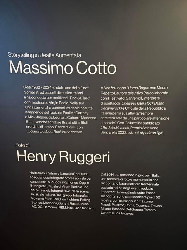 L'esposizione ha presentato oltre 50 fotografie scattate da Henry Ruggeri, raffiguranti artisti iconici della musica internazionale come Pearl Jam, Foo Fighters, Rolling Stones, Ramones e Madonna. Grazie alla tecnologia dell'app Notaway®, inquadrando le fotografie con lo smartphone, i visitatori hanno potuto accedere a contenuti video esclusivi in realtà aumentata, realizzati da Massimo Cotto. Questi contributi hanno arricchito l'esperienza offrendo aneddoti e curiosità sugli artisti ritratti, narrati dalla voce inconfondibile di Cotto.