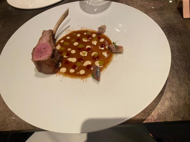 E’ quasi un viaggio illusorio/gourmet: sembrano olive ma non lo sono, hanno solo la forma, dentro un impasto di insalata di rinforzo. Sembrano chips, sono alghe fritte, una tira l’altra. I grissini da immergere nella spuma di fiordilatte. Una minimargherita cotta al vapore e servita in un mini/coccio. E questo solo per cominciare. Le portate sono sette o nove, a secondo del menu’ dei piatti signature del giovanissimo chef, Domenico Candela ( 39 anni) e che risalgono alla sua prima stella ottenuta nel 2018. Ovviamente si tratta di piatti continuamente rivisitati. Si comincia con la ricciola marinata al miso e humus di ceci e salsa acqua pazza alla rosa canina. Carciofo allo zabaione, con limone salato al sapore di caffè. Riso con gamberi rossi, olio di dragoncello e jus di lamponi fermentato. Tra una portata e l’altra un sorbetto di pera, blu di bufala e scaglie di cacao per preparare il palato per le altre squisitezze. Servito in una porcellana di design, in esclusiva per George, a forma forma di Maschio Angioino, del busto e del calice di San Gennaro. Con garbo raffinato come i suoi piatti ci viene a salutare lo chef che, alla domanda di Ilaria se conoscesse lo chef Riccardo Camanini di Lido 84 non solo si “illumina" ma cita anche il piatto che lo ha reso famoso nel mondo: il cacio e pepe in vescica di maiale. Che dire, lo chef Candela si conferma aggiornatissimo in materia. E allora proponiamo una fusione di sapori: Il Sud incontra il Nord e viceversa.