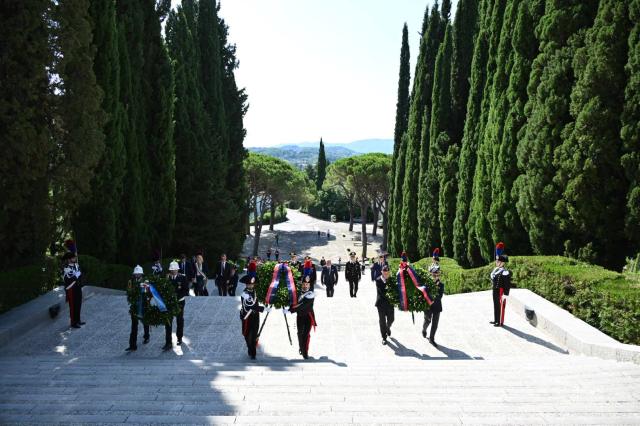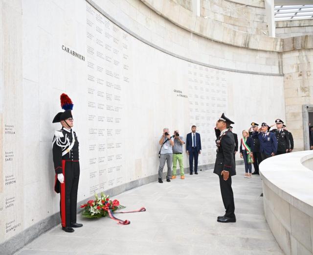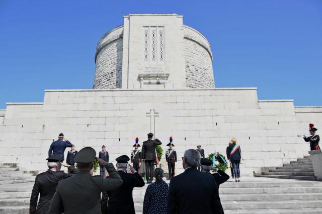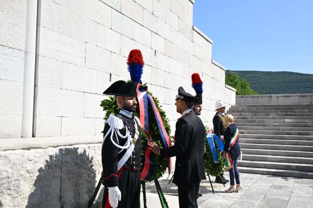 Le celebrazioni sono, quindi, proseguite al Sacrario Militare di Oslavia, ove sono custodite le spoglie di oltre 57.000 militari caduti nelle Battaglie dell’Isonzo, con la deposizione di una corona d’alloro da parte del Comandante Generale dell’Arma dei Carabinieri, Gen C.A. Salvatore Luongo, alla presenza del Capo Ufficio per la Tutela della cultura e della memoria della Difesa, Gen. C.A. Andrea RISPOLI, del Comandante Interregionale Carabinieri “Vittorio Veneto”, Gen C.A. Pierangelo IANNOTI, del Comandante della Legione Carabinieri “Friuli Venezia Giulia”, Generale di Brigata Gabriele VITAGLIANO.
