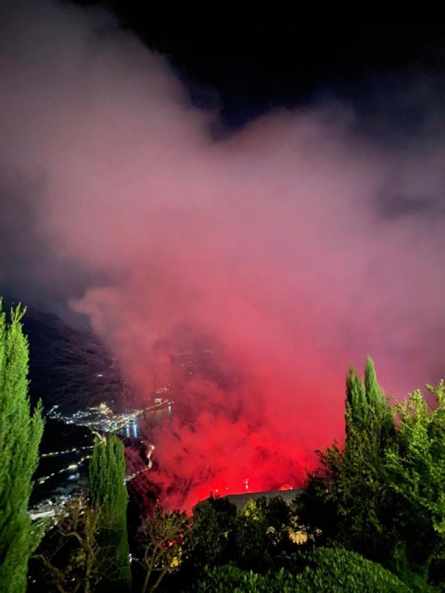 Gran finale di Fuochi d’articio sparati da Torello. Con occhi spalancati da Alice nel Paese delle Meraviglie.