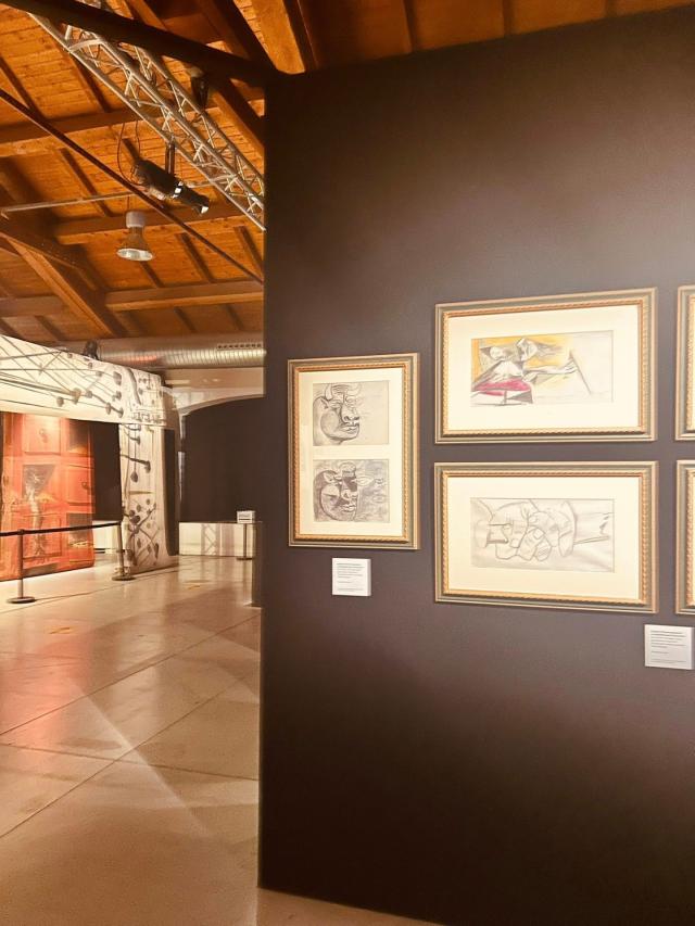 Un momento clou è la straordinaria scenografia teatrale “Bacchanale” di Dalí, esposta in Italia per la prima volta, che trasforma lo spazio espositivo in un teatro di sogno e follia.