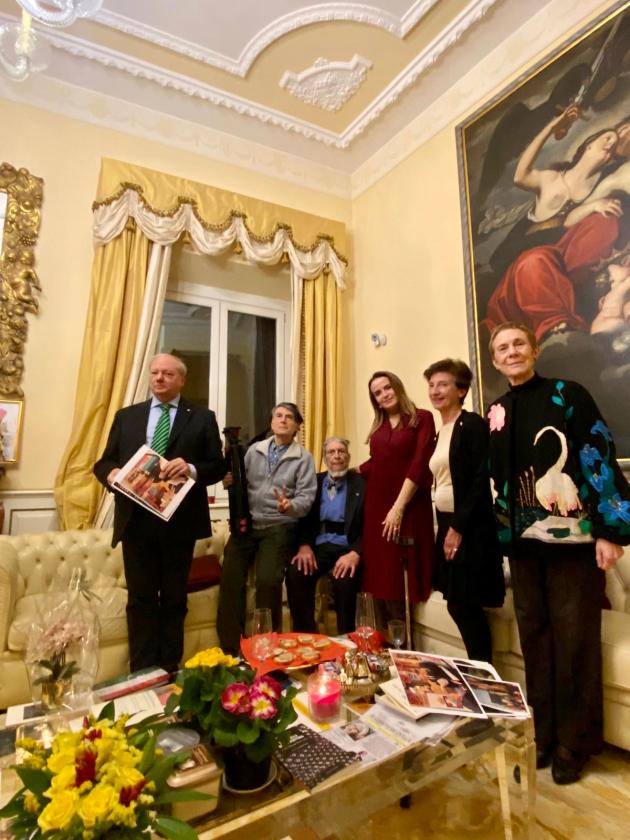La moderatrice ha ricordato come pochi giorni prima, al Gala del 148° anniversario di fondazione dell’Istituto Nazionale per la Guardia d’Onore alle Reali Tombe al Pantheon, abbiano incontrato S.A.R Emanuele Filiberto di Savoia, che ha voluto consegnare una importante onorificenza proprio al Conte. In tale occasione, trai commensali anche il Cav. Giovanni Duvina, Presidente della Consulta dei Senatori del Regno, e Francesco Garibaldi Hibbert, discendente di Anita Garibaldi, il quale interverrà ai prossimi incontri del Salotto. Presenti in casa di Carlotta anche i Marchesi del Gallo di Roccagiovine, discendenti di Giulia Bonaparte, che hanno dato la parola alla storica Antonietta Angelica Zucconi, già bibliotecaria presso l’Università La Sapienza e storica del periodo napoleonico, dei Napoleonidi e della sociabilità dei salotti. I Salottieri sono in passato stati ricevuti dai marchesi presso il castello del Gallo, nei posti amati così tanto da Orazio da disertare la ambitissima corte di Augusto, tra Villa Adriana e la Villa di Orazio, prendendo il caffè nelle tazzine che furono di Giulia. È infatti proprio nel Castello di Mandela che Giulia (Bonaparte) portava i suoi di salottieri del Salotto di Parigi, poi trasferito a Roma dopo la battaglia di Sedan ed il conseguente esilio di Napoleone III.