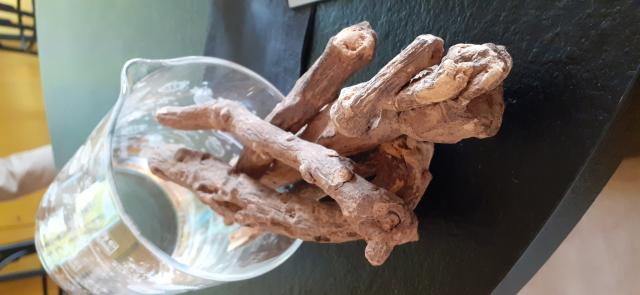 Ci colpisce ancora l’attenzione per la sostenibilità e l’uso di materiali di recupero e riciclabili per arredare questo spazio. Ci piace pensare che i tronchi bianchi che si intrecciano tra i tavoli vengano da qualche isola lontana per essere ricollocati direttamente qui, dove nei piatti ritroviamo il sapore del mare.