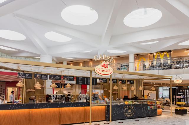 La Food Hall realizzata da Grandi Stazioni Retail e inaugurata lo scorso settembre alla stazione di Napoli Centrale ha dato un nuovo volto a un'area precedentemente caratterizzata dal degrado, riconsegnando questo spazio a cittadini e viaggiatori. Affacciata sui binari, è un'area a due piani di oltre 4mila metri quadrati, che ospita ora diversi 14 diversi brand di ristorazione.