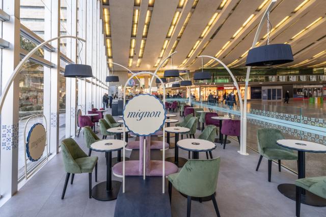 Una nuova apertura nell'atrio di ingresso di Roma Termini, che ha recentemente riacquistato la vista sulle Mura Serviane grazie ai lavori di Grandi Stazioni Retail. Nella storica stazione arriva Mignon alle mura, uno spazio circondato da vetrate riservato alla colazione, all'aperitivo e al pranzo dei viaggiatori.