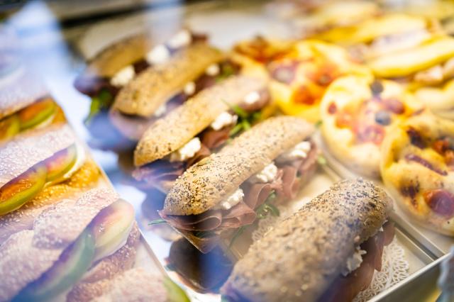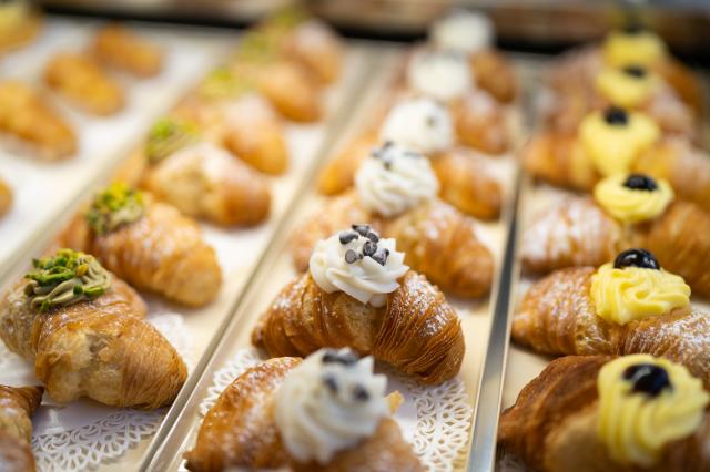 Si parte dalla prima colazione con un'offerta di croissant (anche integrale), sfogliatelle, pasticciotti e altri classici tradizione, con la possibilità di scegliere anche alcune proposte vegane. Per chi preferisce la piccola pasticceria italiana sono disponibili code d’aragosta, cannoli, bignè e babà, da accompagnare con caffè Mogi, centrifughe o spremute. Il momento del pranzo è invece caratterizzato dalle proposte salate con tramezzini, panini, pinse e insalate e dalle loro versioni vegetariane.