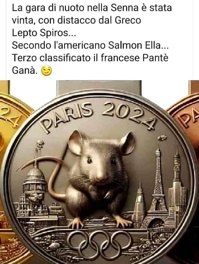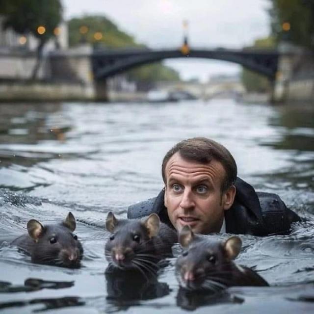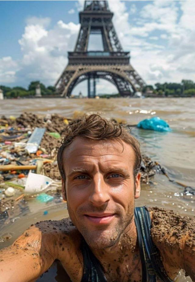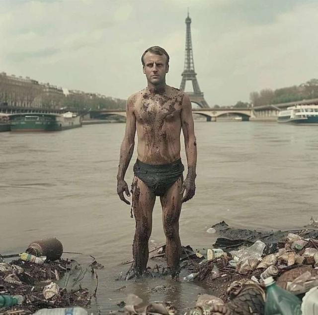 L'acqua inquinata della Senna alle Olimpiadi di Parigi 2024 è stata oggetto di numerose polemiche e anche di moltissimi MEME. Macron è stato ritratto in ogni modo: mentre stringe la mano alla pantegana vincitrice, mentre fa il bagno tra i topi, mentre è in piedi dentro alla Senna con intorno l'immondizia. In una delle foto inoltre si fa un paragone con il periodo del lockdown, dell'obbligo di mascherine e del divieto di stringersi la mano: "Tre anni fa ci si salutava con il gomito, oggi invece si nuota nella Senna insieme alle pantegane".
