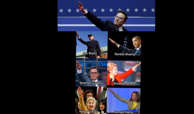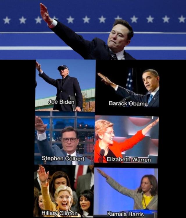 Il gesto fatto da Elon Musk secondo molti consisterebbe nel saluto romano. Lo stesso gesto, però, è stato fatto in passato anche da diversi leader democratici Usa, da Joe Biden a Barack Obama a Stephen Colbet, da Hillary Clinton a Elizabeth Warren a Kamala Harris, come dimostra un post diventato virale su X.