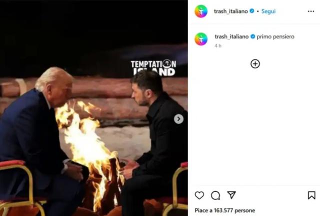 Restando nei programmi sentimentali, Trump e Zelensky vengono anche ritratti nel momento del falò di confronto di Temptation Island.
