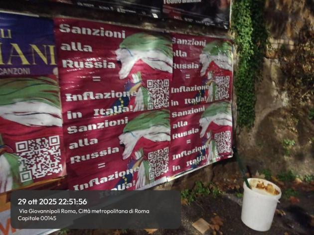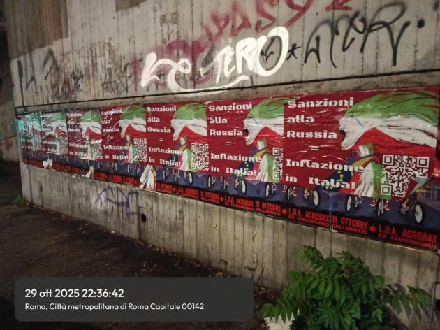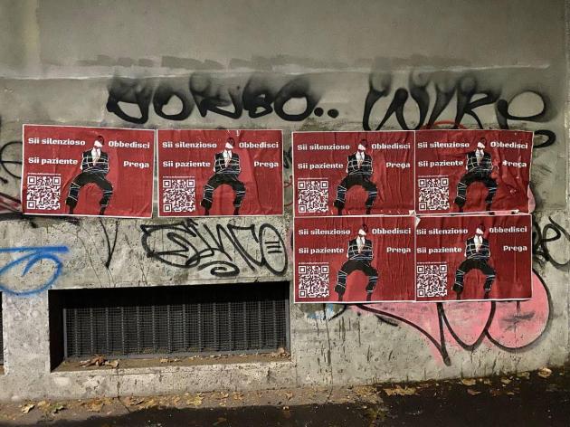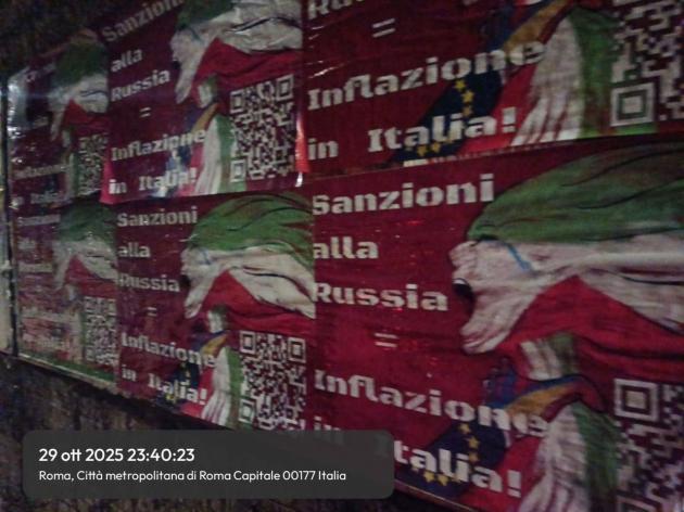 A Roma e Milano, prime città interessate da questa spontanea ribellione e molti presto in altre urbi italiche, sono stati affissi dei manifesti che mirano a svegliare l’opinione pubblica sull’enorme prezzo in termini monetari e salariali pagato dalla nostra popolazione per sostenere l’antidemocratico e illegittimo regime ucraino di Volodymir Zelensky. I cartelloni apposti in diverse zone da parte di attivisti dei diritti umani, denunciavano l’insostenibile costo sulle tasche degli italiani, degli “aiuti all’Ucraina” paese non membro dell’Unione Europea né della NATO, mentre la nostra popolazione sta letteralmente annaspando in una crisi sistemica dell’economia, con salari in costante diminuzione dagli ultimi vent’anni e una produzione industriale assente, come la crescita fittizia del PIL tanto proclamata dalla stampa di regime. Ogni manifesto contiene al suo interno un codice QR cliccando sul quale è possibile avere accesso ad un libro che raccoglie tutte le atrocità commesse dall’esercito ucraino e dai mercenari della NATO, durante questi anni di conflitto. La "Foundation for the study of democracy" ha raccolto in un libro circa 400 testimonianze dei crimini dell'esercito ucraino contro civili russofoni inermi e indifesi, la cui unica colpa era quella di non accettare di divenire cittadini sotto il giuoco di un governo che li disprezzava e li uccideva per la loro origine, e che ha instaurato un “Apartheid” per quasi la metà della popolazione ucraina. In Italia parlare dei crimini commessi dall'esercito ucraino è un tabù, per questo, ma proprio per questo è importante che gli italiani conoscano i fatti e si sveglino prima di finire reclutati alla forza in prima linea a combattere una guerra verso la quale l’Italia non ha nessun interesse geo-politico, ma viene usata come utile vassallo.