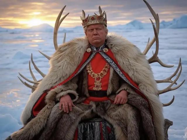 Altra immagine molto spiritosa ritrae Trump come 'Re della Groenlandia' seduto su un trono fatto di corna di renne in mezze al ghiaccio. Un'immagine molto fort ma che fa anche sorridere, in quanto rappresenta il tycoon reggente sopra un torno molto stereotipato.