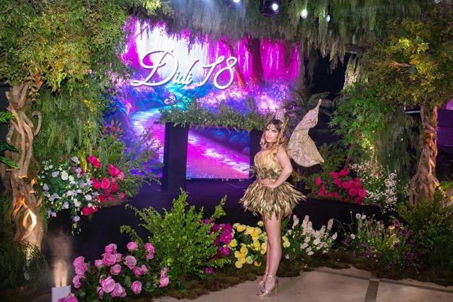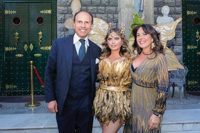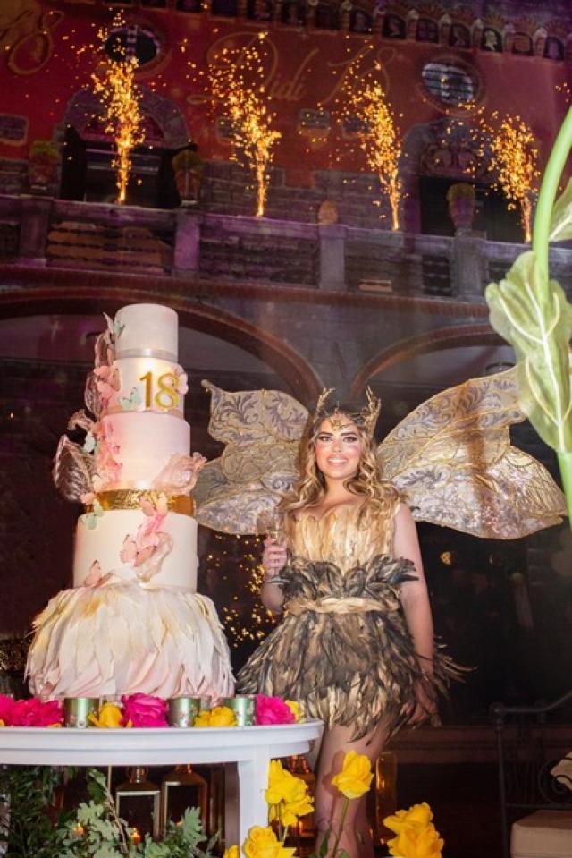 Per il dinner si passa nella terrazza vista mare, pavimento specchiato e grandi candelabri, trasformata in un’ infiorata allestita dalla maison “Massimo Flower” con tonalità del rosa, cascata di petali e cuscini con la scritta Didi 18. E’ un gioco di squadra, l’artista e regina del body art, ha creato ali e corona per la festeggiata. Il suo abito si ispira alla top model e influncer Kendall Jenner, un tutu’ di piume su corsetto damascato color bronzo, esaltava la bellezza di Didi.
