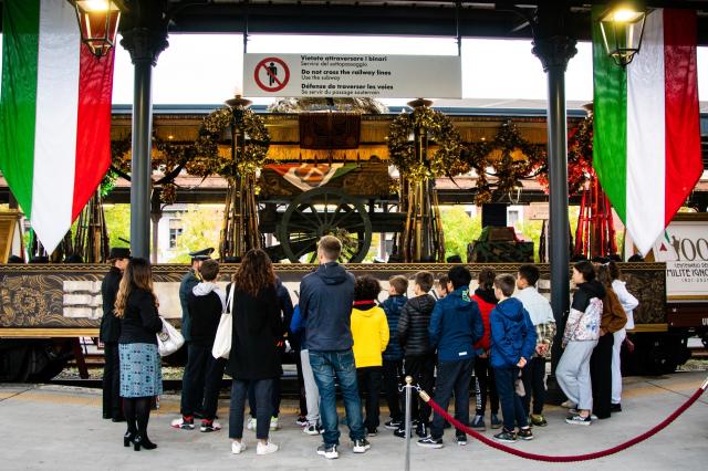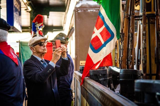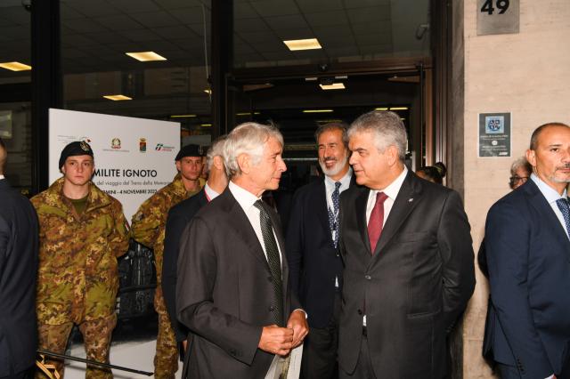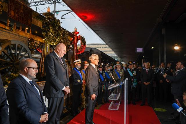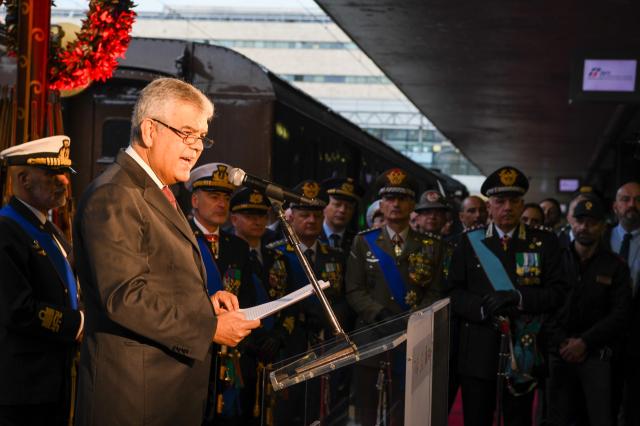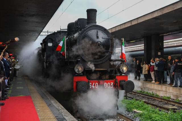 Il fumo di una locomotiva a vapore, le note della “Leggenda del Piave”, i labari delle associazioni degli ex combattenti e reduci schierate al primo binario di Roma Termini: le Ferrovie dello Stato Italiane con l’amministratore delegato Luigi Ferraris, insieme al Ministero della Difesa, con il ministro Guido Crosetto e ad altre autorità civili e militari hanno celebrato stamani la Giornata dell'Unità Nazionale e delle Forze Armate accogliendo con tutti gli onori il Treno della Memoria. La rievocazione storica del convoglio che 101 anni fa trasportò a Roma la salma del milite ignoto e che quest’anno, dopo il viaggio del centenario, ha di nuovo attraversato l’Italia, da Trieste a Palermo, transitando in 730 stazioni e sostando in 17 di queste.