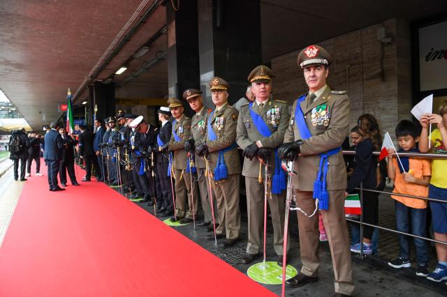 Alla cerimonia di Roma Termini erano presenti Luigi Ferraris, amministratore delegato del Gruppo Ferrovie dello Stato Italiane, il Ministro della Difesa Guido Crosetto e il Ministro per lo Sport e i Giovani Andrea Abodi, quello della Cultura Gennaro Sangiuliano, il Capo di Stato Maggiore della Difesa Giuseppe Cavo Dragone insieme ad altri numerosi rappresentanti dell’Esercito, delle istituzioni e della società civile.