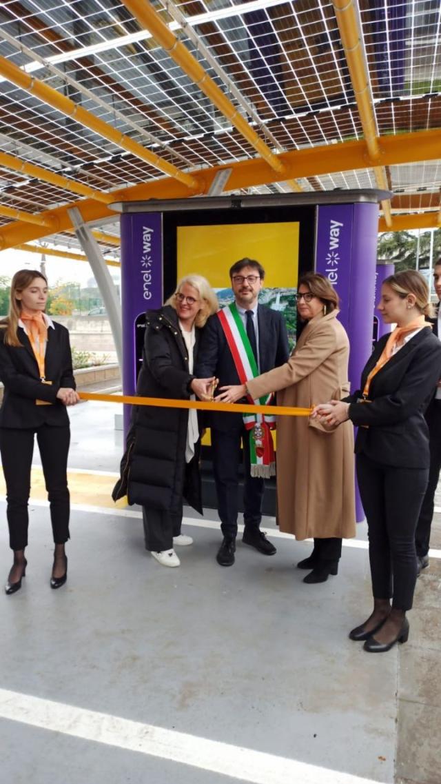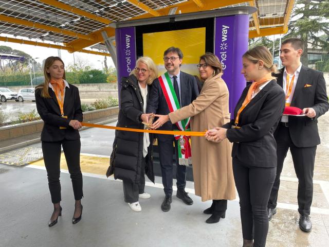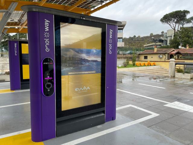 Il lancio di Ewiva è stata l’occasione per inaugurare la prima stazione di ricarica premium situata a Roma, in Via Flaminia 871, che dispone di un locale aperto a tutti i clienti e 14 punti di ricarica ultraveloce con una potenza fino a 300 kW. L’Hub di ricarica è posizionato sotto una pensilina solare composta da pannelli fotovoltaici prodotti nello stabilimento 3Sun Gigafactory di Enel Green Power in Sicilia.