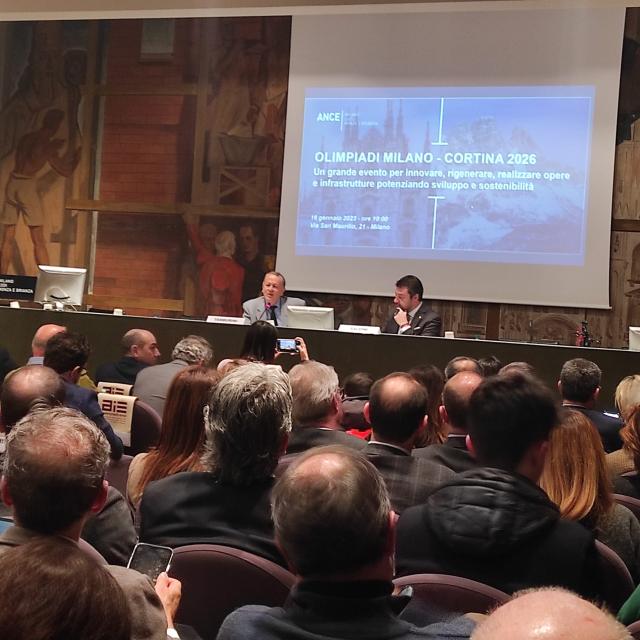 Regina De Albertis, Presidente di Assimpredil Ance ha dichiarato: "Sono lieta di ospitare questa mattinata di confronto sulle prossime Olimpiadi invernali Milano Cortina del 2026 e saluto i partecipanti e le persone collegate.