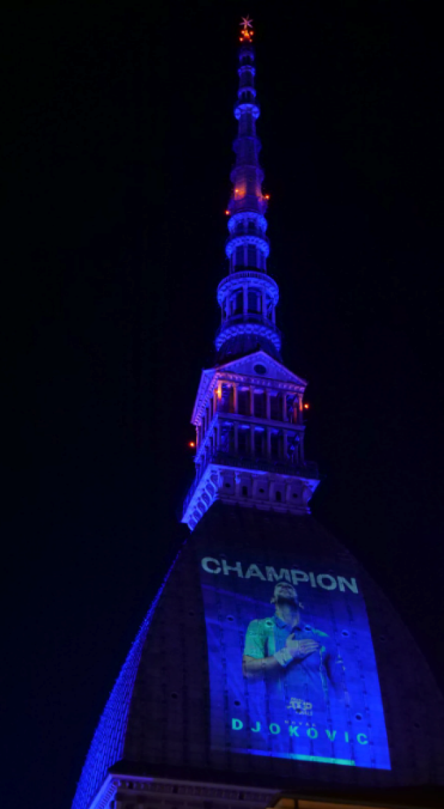 Le immagini di Novak Djokovic sulla Mole sono state rese visibili live attraverso la app Molecam, che grazie ad una videocamera dedicata, consente di apprezzare in tempo reale la Mole Antonelliana e le sue differenti colorazioni luminose in tutto il mondo.