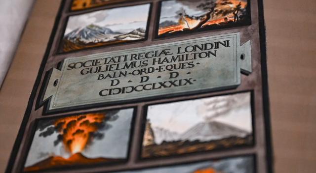 Altra parte importante del percorso espositivo affronta il tema del viaggio. Un momento decisivo della vita di Hamilton fu la visita che gli fece nel 1787 Johann Wolfgang Goethe durante il suo famoso Viaggio in Italia. Anche l’ambasciatore fu un grande viaggiatore: si avventurò nei territori allora poco praticati e poco sicuri della Calabria e della Sicilia, animato dalla sua curiosità e dalla passione scientifica per fenomeni naturali eccezionali come i vulcani e i movimenti tellurici. Di questi interessi rimane un’eccezionale testimonianza in un’altra celebre impresa editoriale da lui promossa, la pubblicazione dei volumi intitolati Campi Phlegraei editi a Napoli nel 1776, cui si aggiungerà nel 1779 un supplemento con un Account of the Great Eruption of Mount Vesuvius, opera illustrata da un’équipe guidata dal pittore Pietro Fabris, che fu il suo accompagnatore nelle escursioni sulle falde del Vesuvio e dell’Etna.