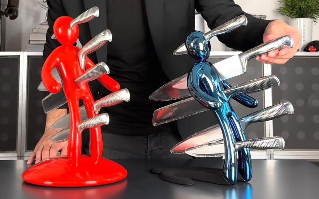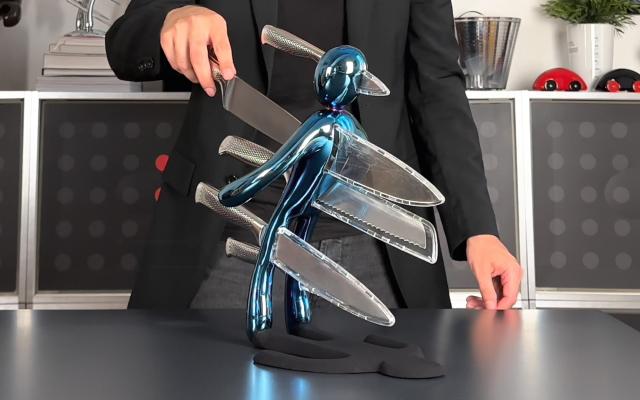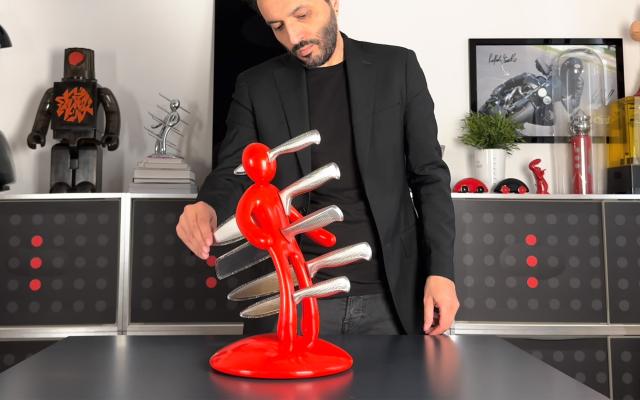 Disturbante quanto basta, non passa inosservato e fa parlare di sé in qualunque ambiente lo si esponga. Pensato più come una scultura funzionale che come un semplice accessorio da cucina. Soprattutto, un prodotto vero: i coltelli sono affilati, ergonomici, progettati per essere usati e realizzati per durare.