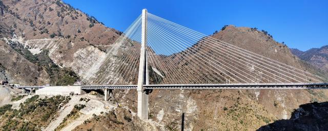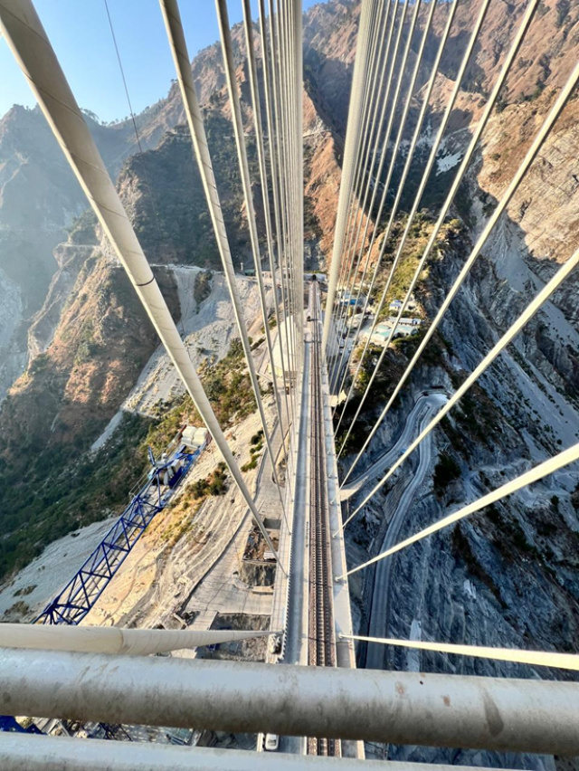 Con una lunghezza di 725 metri e un’altezza di 196, il ponte presenta una sezione strallata di 473 metri, inclusa una campata centrale di 290 e una torre di sostegno asimmetrica. Questo design unico lo rende il primo ponte strallato ferroviario in India e si contraddistingue per essere tra i progetti più ambiziosi e impegnativi dell’intera linea ferroviaria Udhampur-Srinagar-Baramulla, progettata per collegare il Kashmir con i confini nord-occidentali dell’India.