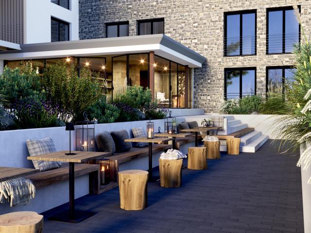 Le aree comuni includeranno reception, lounge bar, ski room, bike room, sala colazioni, sala eventi, palestra e un centro benessere.